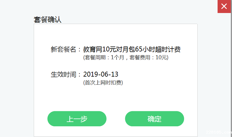 ●选择新套餐后,点击“下一步”,进入“套餐确认页面”