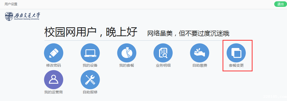 ●登陆用户自助服务系统:http://service.swjtu.edu.cn,单击 “套餐变更”