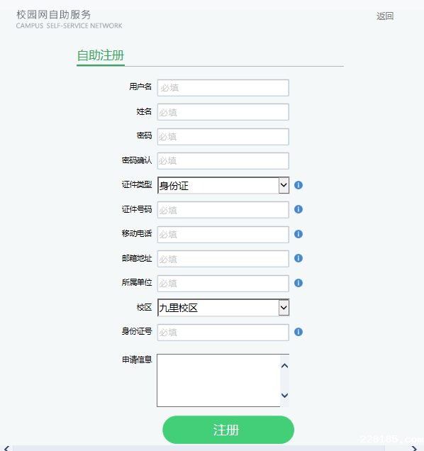 1.新用户访问用户自助服务系统:http://service.swjtu.edu.cn点击“自助注册”,填写注册信息。