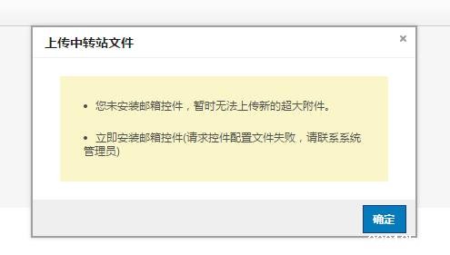 2 首次使用Webmail的文件中转站进行文件上传时,系统会弹出让您安装邮箱控件的提示,建议在正式使用之前,先把大附件上传插件进行下载安装,安装完重启浏览器后再进入文件中转站进行上传。