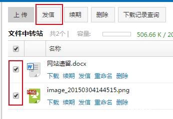 (1)直接在文件中转站页面里勾选所需发送的文件,再点击页面的【发信】按钮: