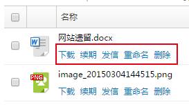 6. 在文件中转站您可以针对指定的文件执行删除,重命名,续期等操作。如下图所示:
