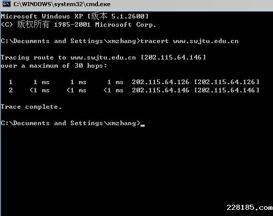 上述例子中如显示“Trace complete.”,表明从本机到达www.swjtu.edu.cn