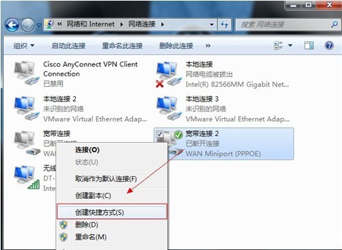 2、在“宽带连接”上点击右键选择“创建快捷方式”即可。