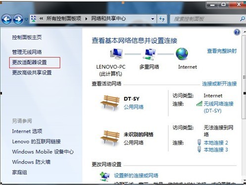 1、点击“更改适配器设置”