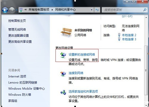 二、在网络和共享中心中选择“设置新的连接或网络”