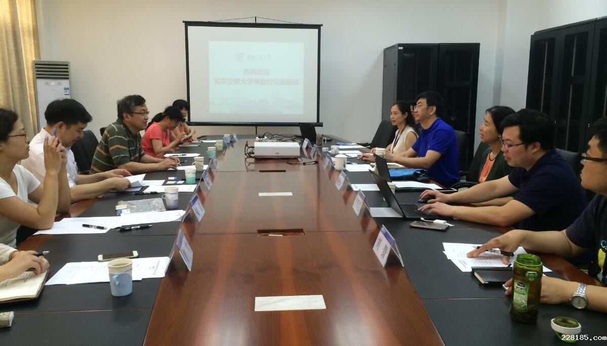 2016年6月1日上午9:00,北京交通大学信息化办公室主任、信息中心主任贾卓生及北京交通大学教务处副处长魏旺强、首都师范大学数字校园中心主任胡迎宾等一行7人莅临我校开云体育彩票官网查询,就高校信息化工作经验展开交流座谈。我校CIO、开云体育彩票官网查询处长赵彦灵、副处长唐燕梅、我校教务处副处长董艳云及相关科室负责人参加了此次交流座谈会,座谈会由赵彦灵主持。