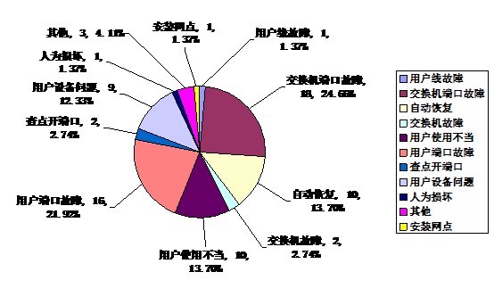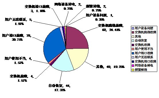 2014年4月,用户服务部共受理用户网络故障327个(不包括电话处理的咨询及上网故障),其中犀浦校区254个,九里校区73个。