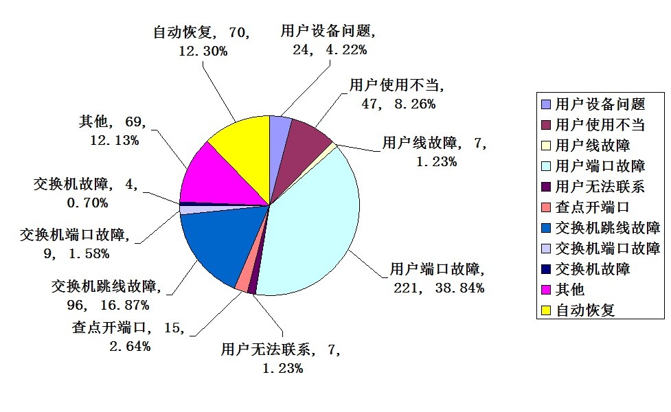 2014年9月,用户服务部共受理用户网络故障759个(不包括电话处理的咨询及上网故障),其中犀浦校区569个,九里校区190个。