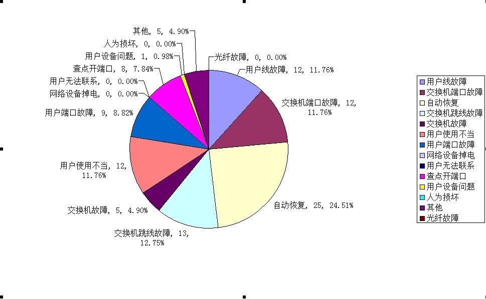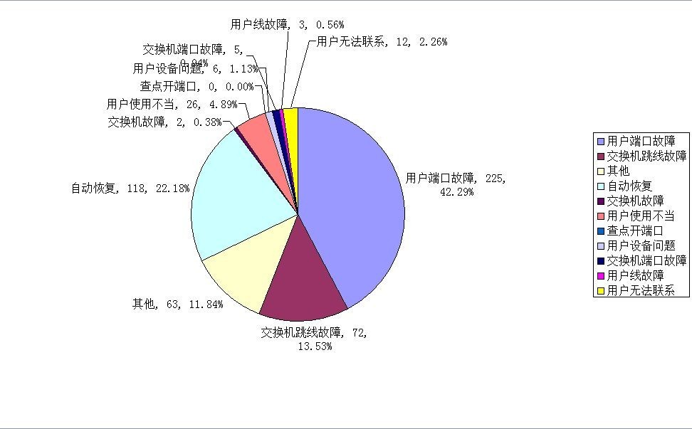 2013年9月,用户服务部共受理用户网络故障635个(不包括电话处理的咨询及上网故障),其中犀浦校区533个,九里校区102个。其中犀浦校区天佑斋宿舍端口损坏造成的故障较多。