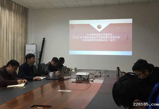 为以严实作风落实全面从严治党主体责任,按照机关党委统一部署,于2018年12月7日下午17:00在犀浦校区图书馆B146室,开云体育彩票官网查询党支部组织全体党员集中学习学校纪委五个文件,在峨眉校区工作的党员通过远程视频连接一并参加,党支部书记赵彦灵同志主持了党课学习。
