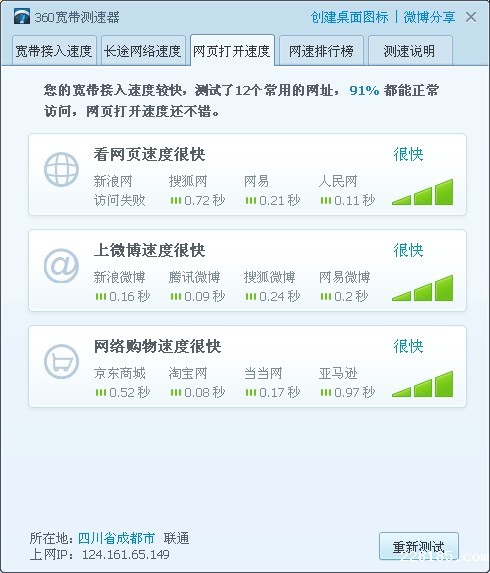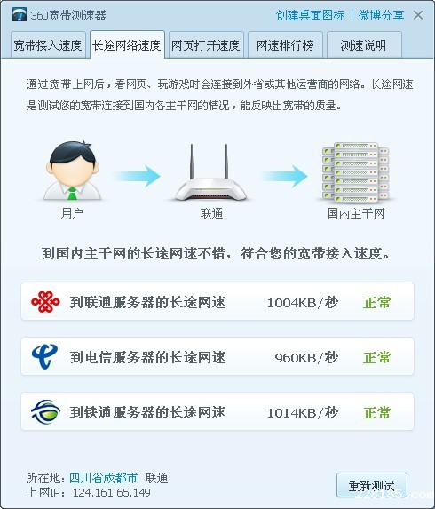 3、测速时请不要采用路由器共享上网的方式,避免测试数据不准确。