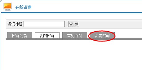 (3)在线咨询:用户可以通过进入校园门户,在校园门户首页的公共服务栏目中点击“在线咨询”,在“在线咨询”页面中点击“发表咨询”,如图3所示:
