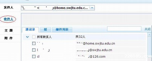 解决方法:点击“收件人”,弹出通讯录联系人信息,勾选需发送的联系人。如图3所示: