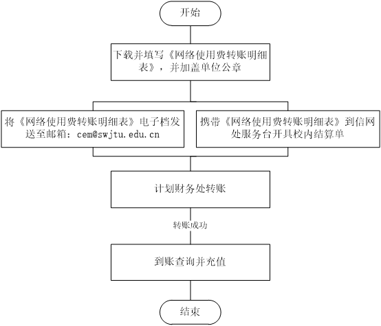 2.请按照表格内容填写并加盖单位公章。(将填写好的《网络使用费转账明细表》电子档发送至邮箱:cem@swjtu.edu.cn)